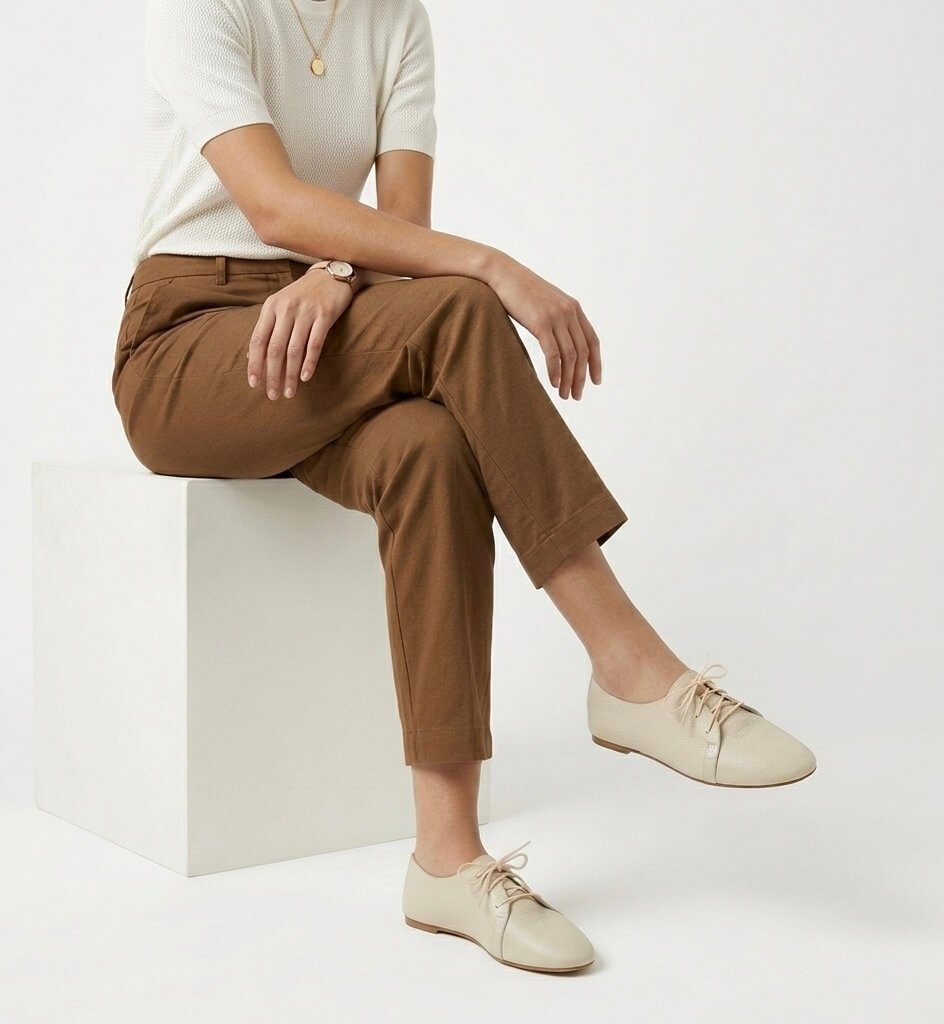 A sapatilha que veste os seus pés. Seu design minimalista e cor neutra fazem dela uma verdadeira coringa na combinação com jeans, alfaiataria ou até mesmo vestidos fluidos.