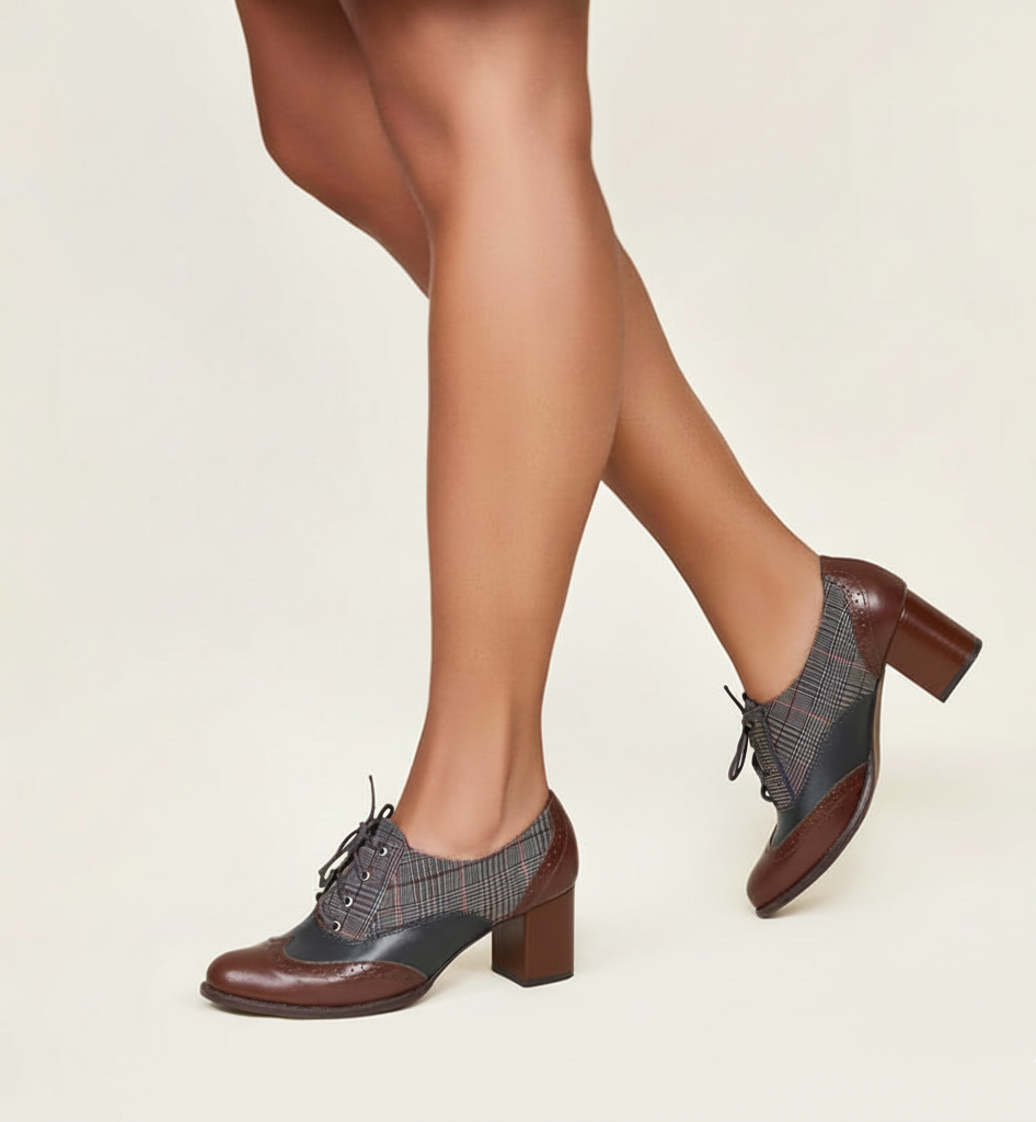 Oxford xadrez. Salto 5 cm totalmente confortável, material couro legítimo na cor barroco café, cinza ônix e tecido xadrez Príncipe de Gales. Perfeito para qualquer ocasião. Agrega elegância, charme ao com um tom clássico ao seu look.